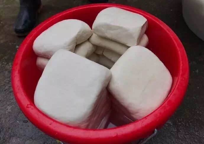 黄石金圆太子豆腐坊的豆腐制作流程上,就有选豆、泡豆、洗豆、磨豆、烧浆、起豆油(卷豆油)、起蓝皮、滤浆、点浆、打板、滤水、大包、紧包、压板成型、拆包等十几道工序。其中包豆腐是黄石金圆太子豆腐与全国其他地方豆腐制作最大的不同点。